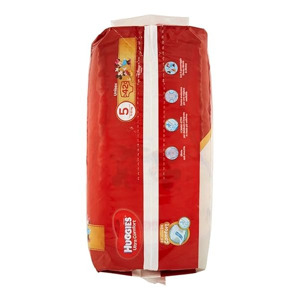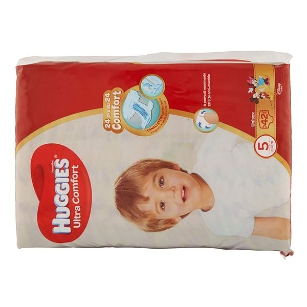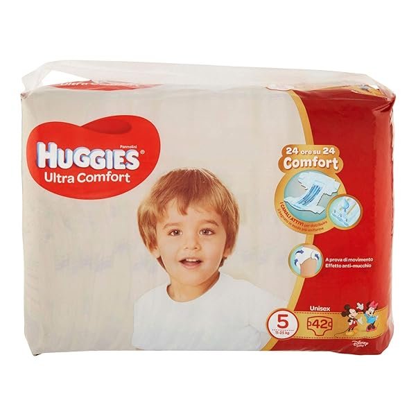 Huggies Ultra Comfort permette di avere la massima libertà di movimento: grazie ai canali attivi e all’effetto anti-mucchio i bambini sono liberi di muoversi. Morbida banda elastica in vita, delicata come un abbraccio. Con i personaggi Disney.